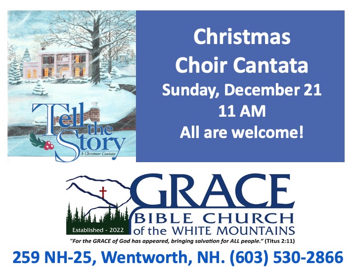 “Tell the Story” is a special Christmas Cantata presented by the Choir and instrumentalists of Grace Bible Church of the White Mountains. Hear the story of how Jimmy heard the real story of Christmas and how it changed him and those around him. Come and bring a friend who needs encouragement this Christmas season. All are welcome!