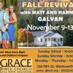Join us for the special Fall Revival with Matt and Hannah Galvan. The services on Sunday will be as follows: Sunday School, 10 AM; Revival Service, 11 AM. Monday – Thursday, 7:00 PM. There will also be a special Teen Extravaganza on Saturday, November 8, at 5 PM. There will be special music and a […]